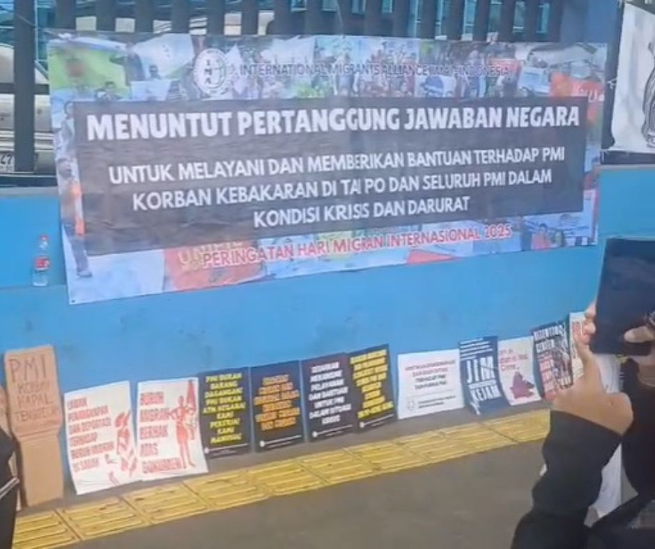 Jakarta – Peringati Hari Buruh Migran Internasional, International Migrants Alliance (IMA) menuntut tanggung jawab pemerintah atas tragedi kebakaran di Tai Po, Hong Kong, yang menewaskan sembilan pekerja migran (PM), satu orang masih hilang, serta 130 lainnya selamat namun kehilangan harta benda dan dokumen.